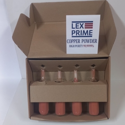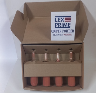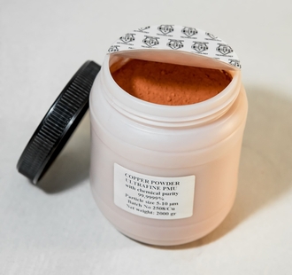 The total content of regulated impurities in lots of copper and copper powder (Li, Ve, Ti, V, Cr, Co, Rb, Mo, Pd, Cd, Pt, Au, Bi) is not more than 0.0001 ppm %. The list of impurities is set by the customer, according to the contract.